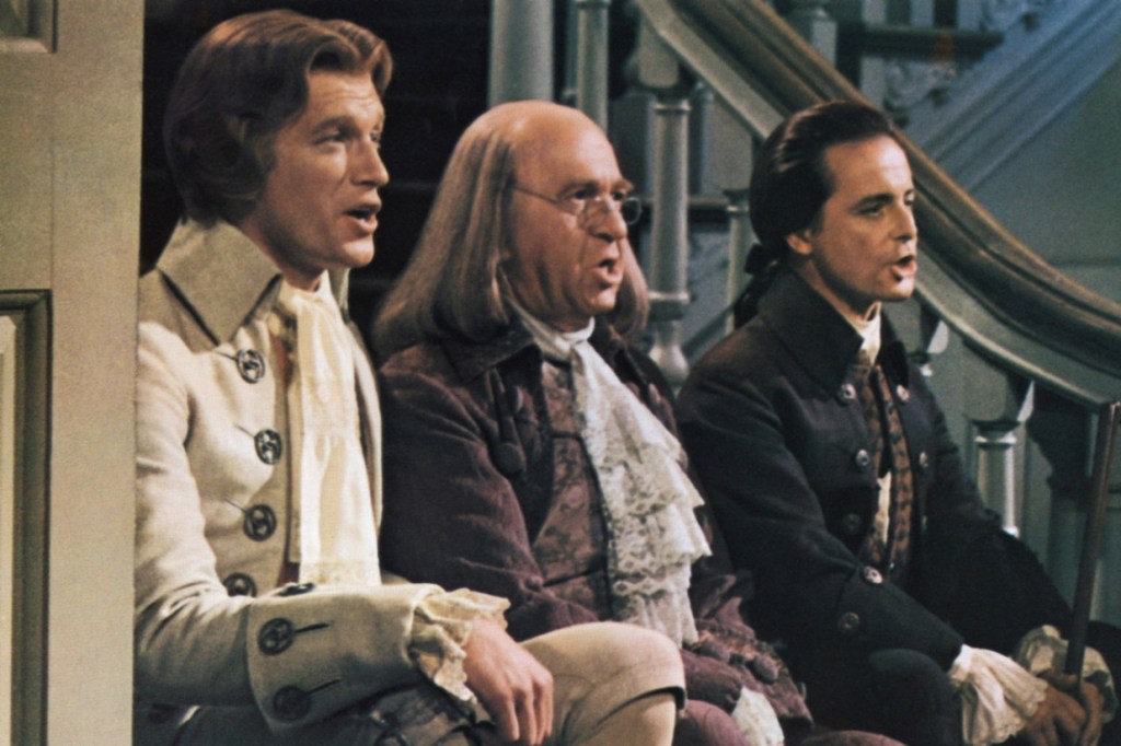The plot is simple: the Founding Fathers are at the Continental Congress in Philadelphia, which ran from May 8 to July 4, 1776.. It’s hot. Everyone is dithering because it seems like a big deal to separate from Britain. John Adams is impatient to get things done but is so disliked he can’t persuade anyone. So Thomas Jefferson is recruited to write a declaration that everyone can be enthusiastic about. He does. There has to be a compromise about slavery to get the Southern vote. There is. It gets signed. The end.