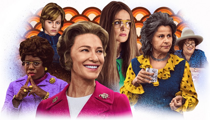 This starts with Cate Blanchett as Phyllis Schlafly, someone I reviled but Blanchett humanizes her. On the other side, Rose Byrne is Gloria Steinem; Uzo Aduba is Congressperson and first female presidential candidate Shirley Chisolm; Margo Martindale is second wave feminist pioneer Bella Abzug; Tracey Ullman is perfectly cast as Betty Friedan; Elizabeth Banks is a Republican feminist, Jill Ruckelshaus. And Sarah Poulson plays a fictional composite character named Alice Maccray, a close friend of Schlafly who becomes disillusioned with her Eagle Forum movement. And because we love John Slattery on this podcast, he is a very good Fred Schlafly, the not always supportive husband of Phyllis.